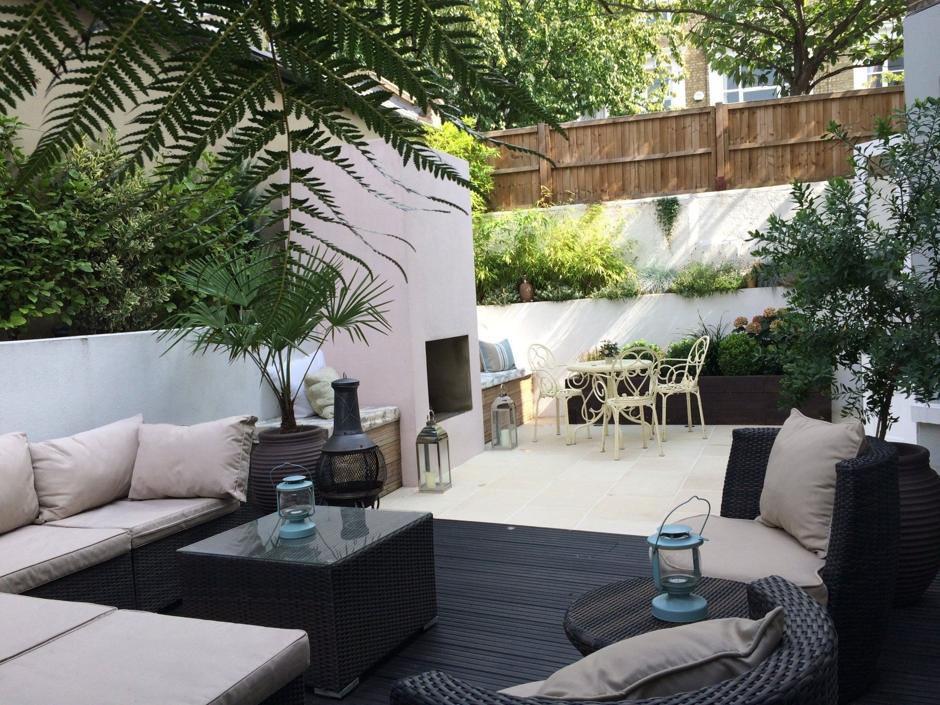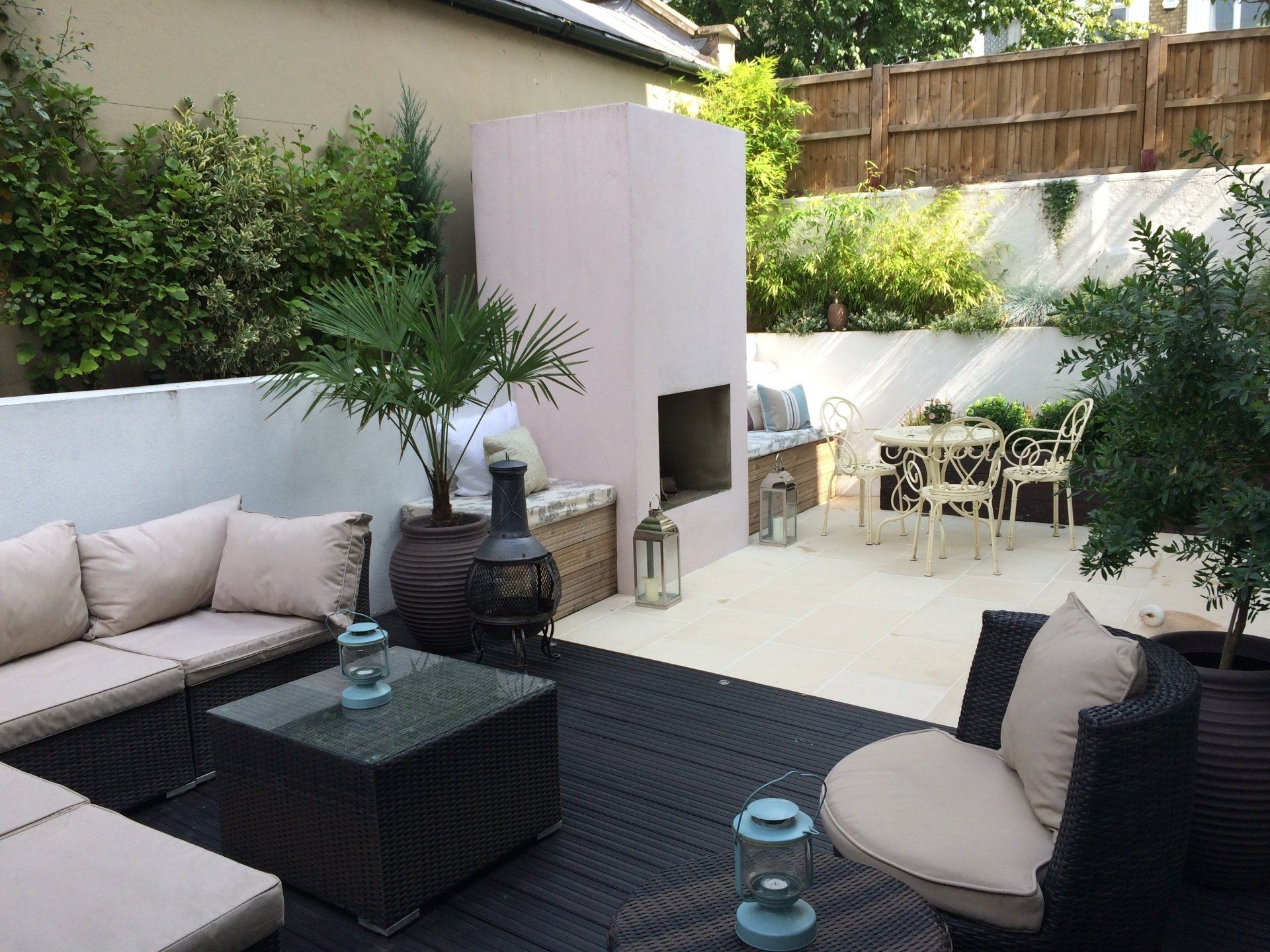 Turning what was a dangerous, unlevelled, eyesore for the entire neighbour into a superb private oasis in the heart of London. Our first ever landscaping job and still look back on it with a twinkle in my eye. Designed to be enjoyed both in the summer and the winter days and truly becoming an extra room in the house. This outdoor fireplace was a bespoke feature and we absolutely love how it turned out.